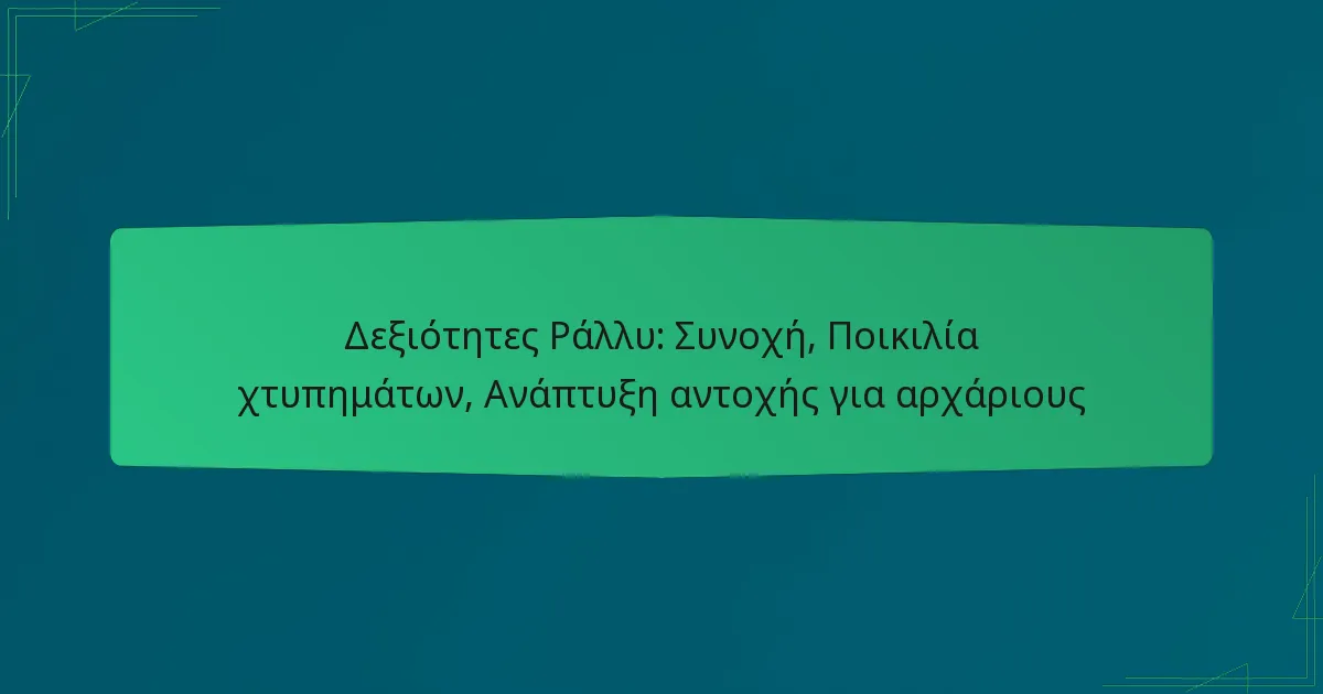 Οι δεξιότητες ράλι για αρχάριους εστιάζουν σε τρεις κύριες συνιστώσες: τη συνέπεια, την ποικιλία χτυπημάτων και την ανάπτυξη αντοχής. Η κυριαρχία σε αυτά τα στοιχεία ενισχύει τη συνολική απόδοση και την απόλαυση στο άθλημα.