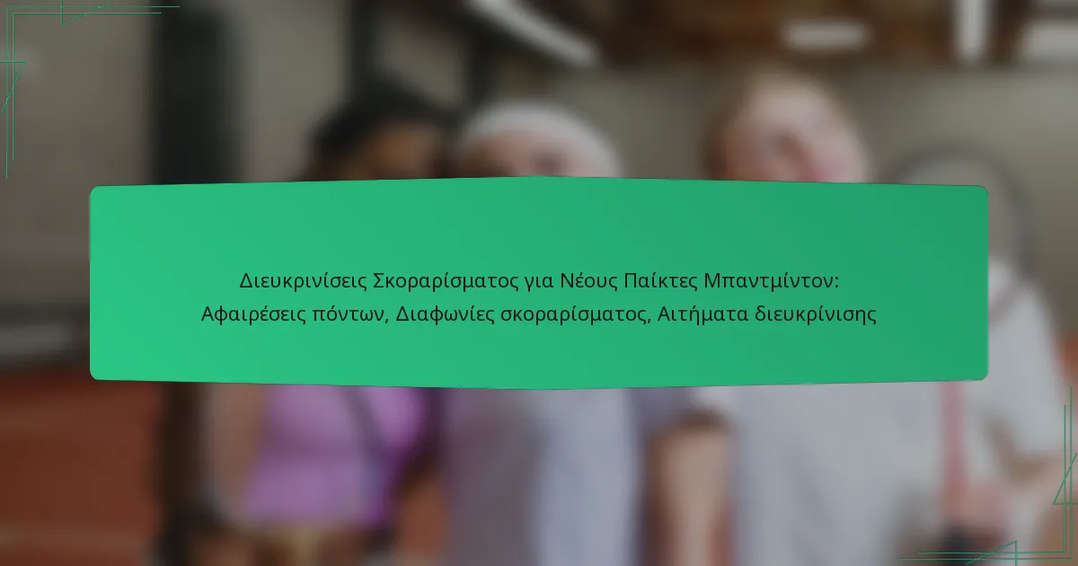 Οι νέοι παίκτες μπάντμιντον μπορούν να επιλύσουν διαφορές στη βαθμολογία κατανοώντας κοινά ζητήματα, ακολουθώντας συγκεκριμένα βήματα και αξιοποιώντας τον ρόλο των διαιτητών αποτελεσματικά. Η σαφής επικοινωνία και η τεκμηρίωση είναι ουσιώδεις για μια δίκαιη επίλυση.